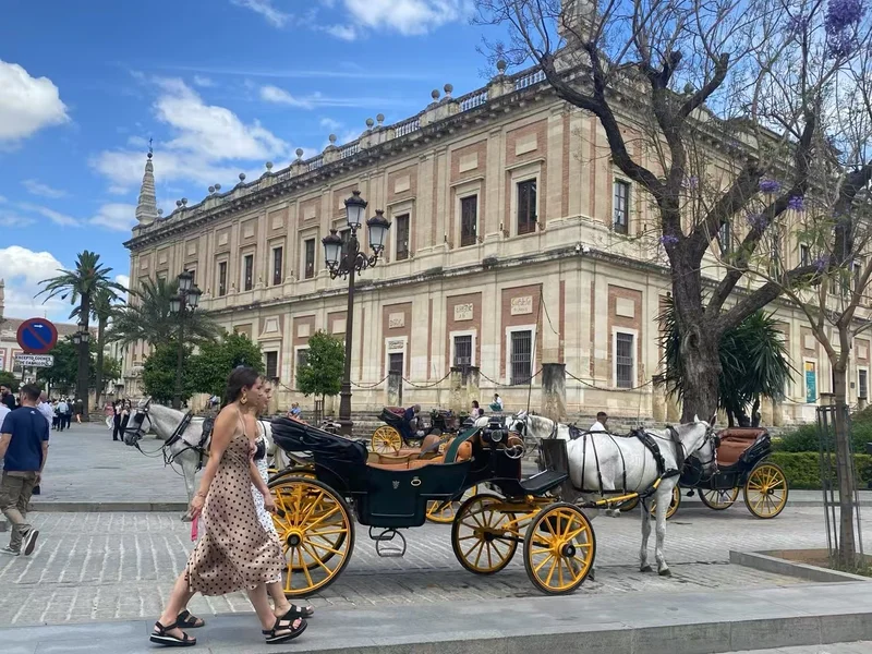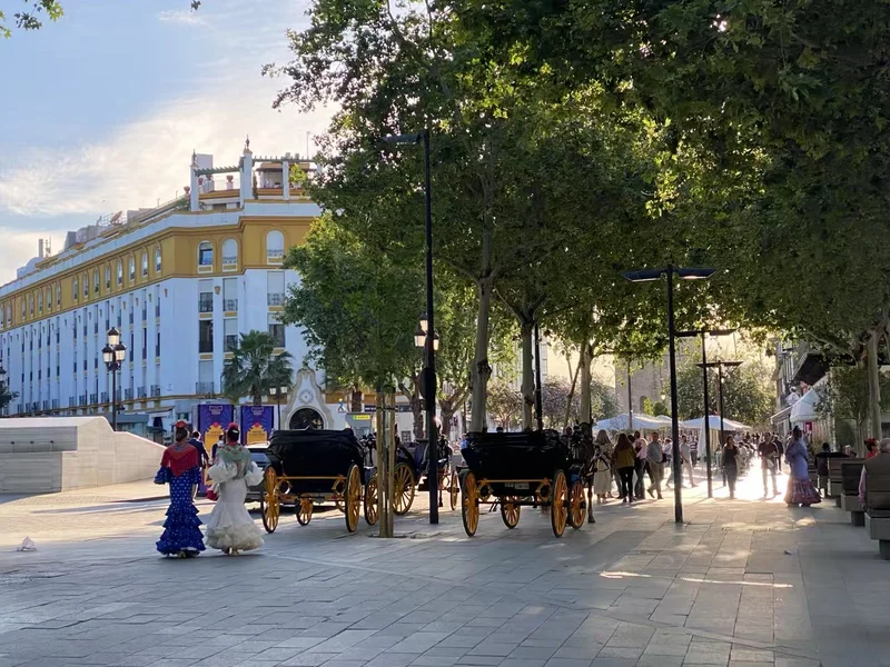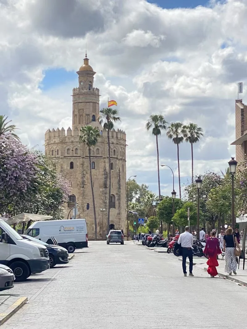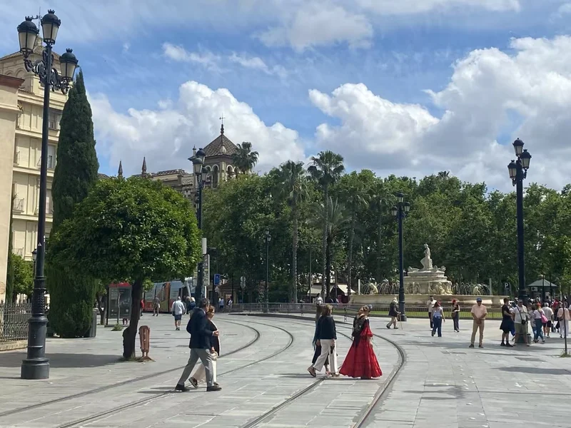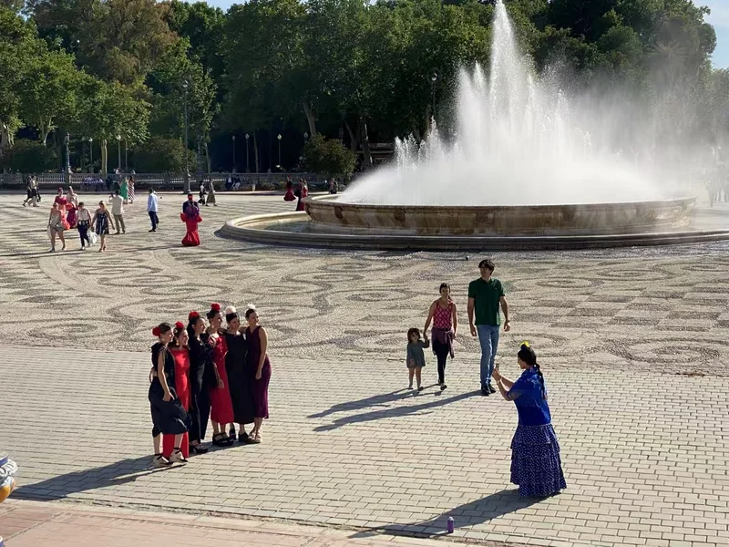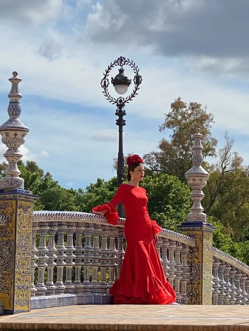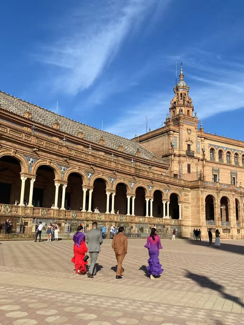 在西班牙的塞维利亚(Seville),最著名的景点当然是她的西班牙广场。这一天,应该是一个特别的节日,在去广场的路上,能看到许多穿着传统长裙的女郎。