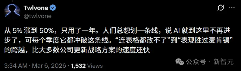 仅仅一年,AI模型就从无法编辑电子表格,跃升到了能超越麦肯锡,这要比绝大多数公司更新策略方案的速度快得多!