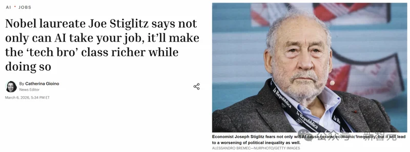 如果你觉得这只是科技行业的「内部调整」,和普通白领没什么关系,那请听听约瑟夫·斯蒂格利茨(Joseph Stiglitz)怎么说。