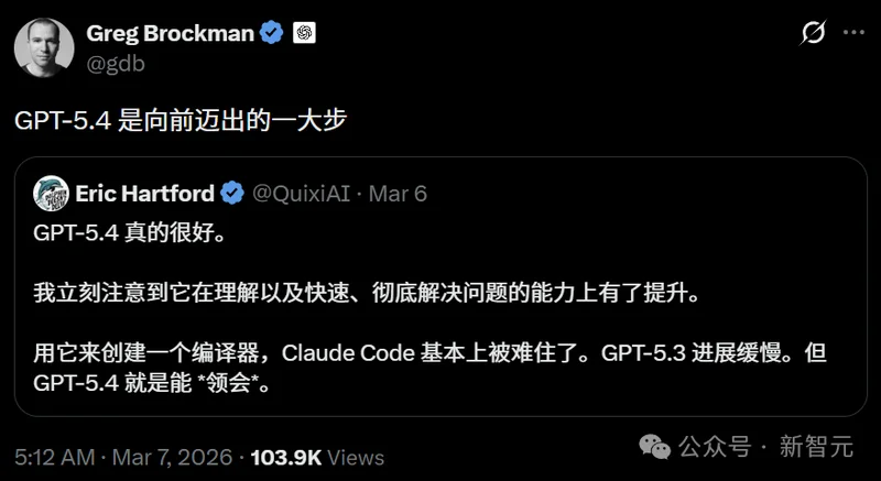 AI圈大佬Eric Hartford试完GPT-5.4,评价只有一句:「理解力和解题速度,肉眼可见地飞升了。」
