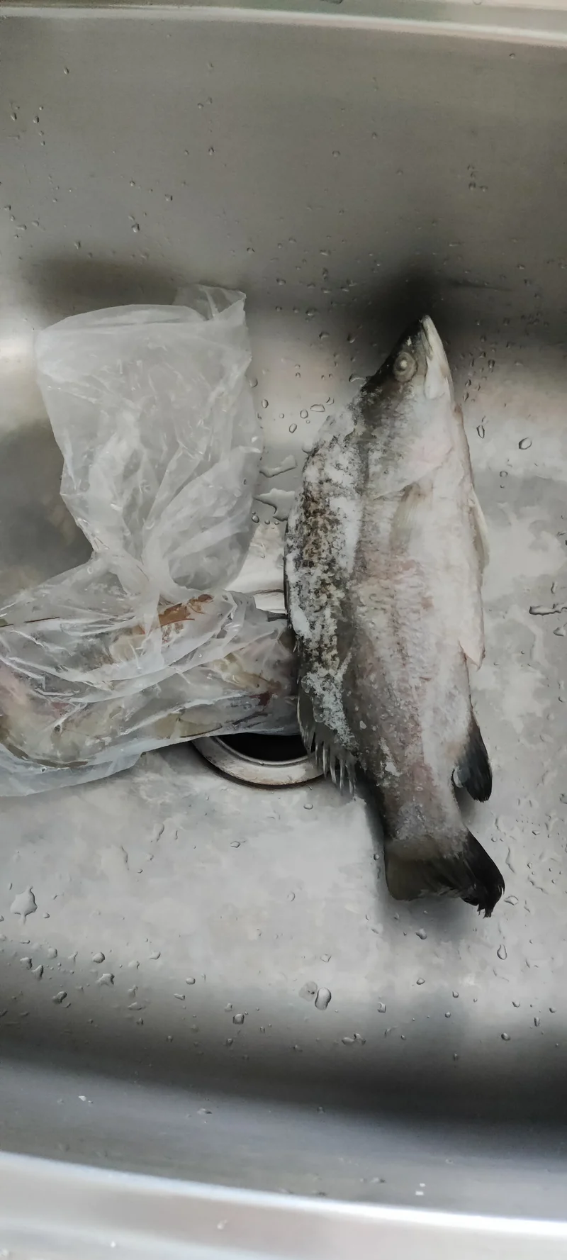 化冰中,鲈鱼、虾。