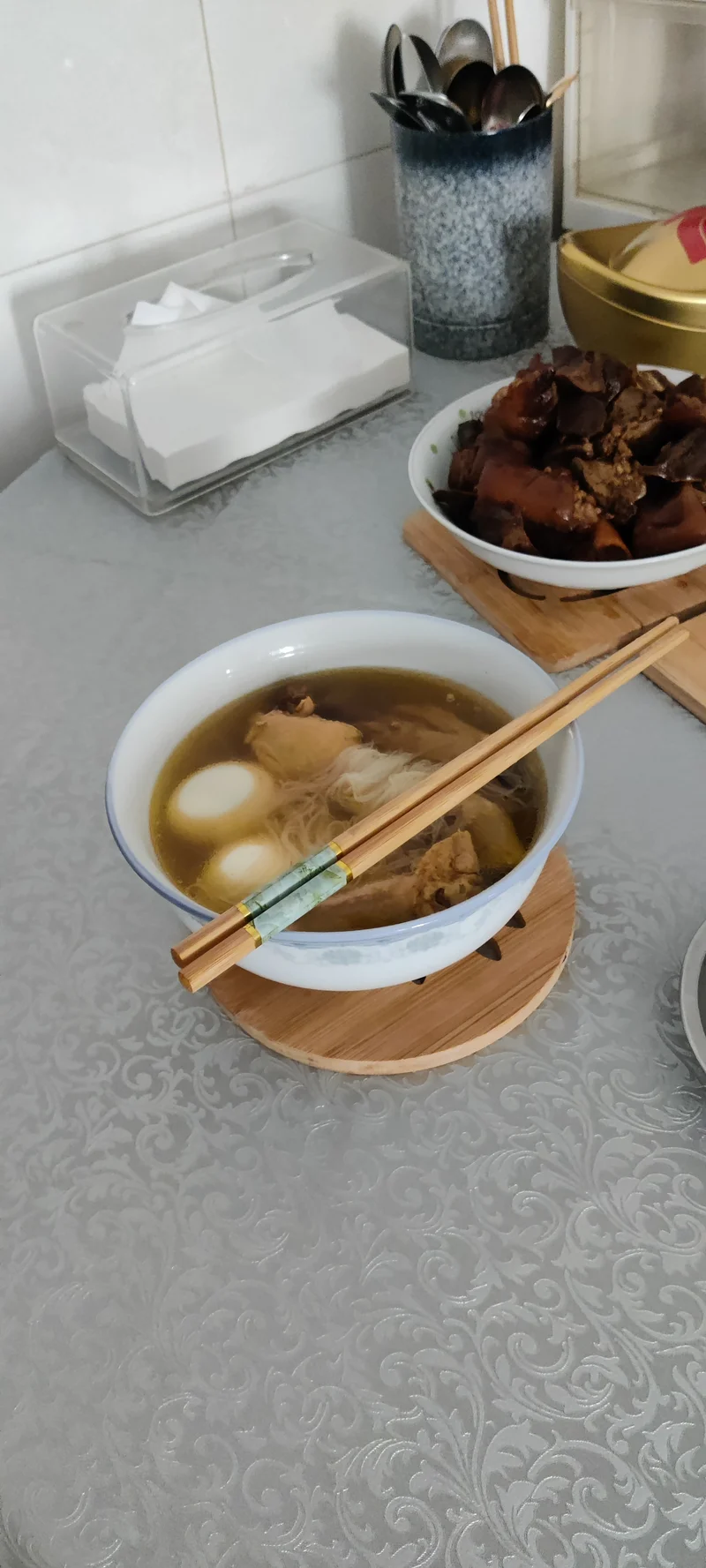 今天家中有人过生日,所以早餐先煮一碗太平面吃,。