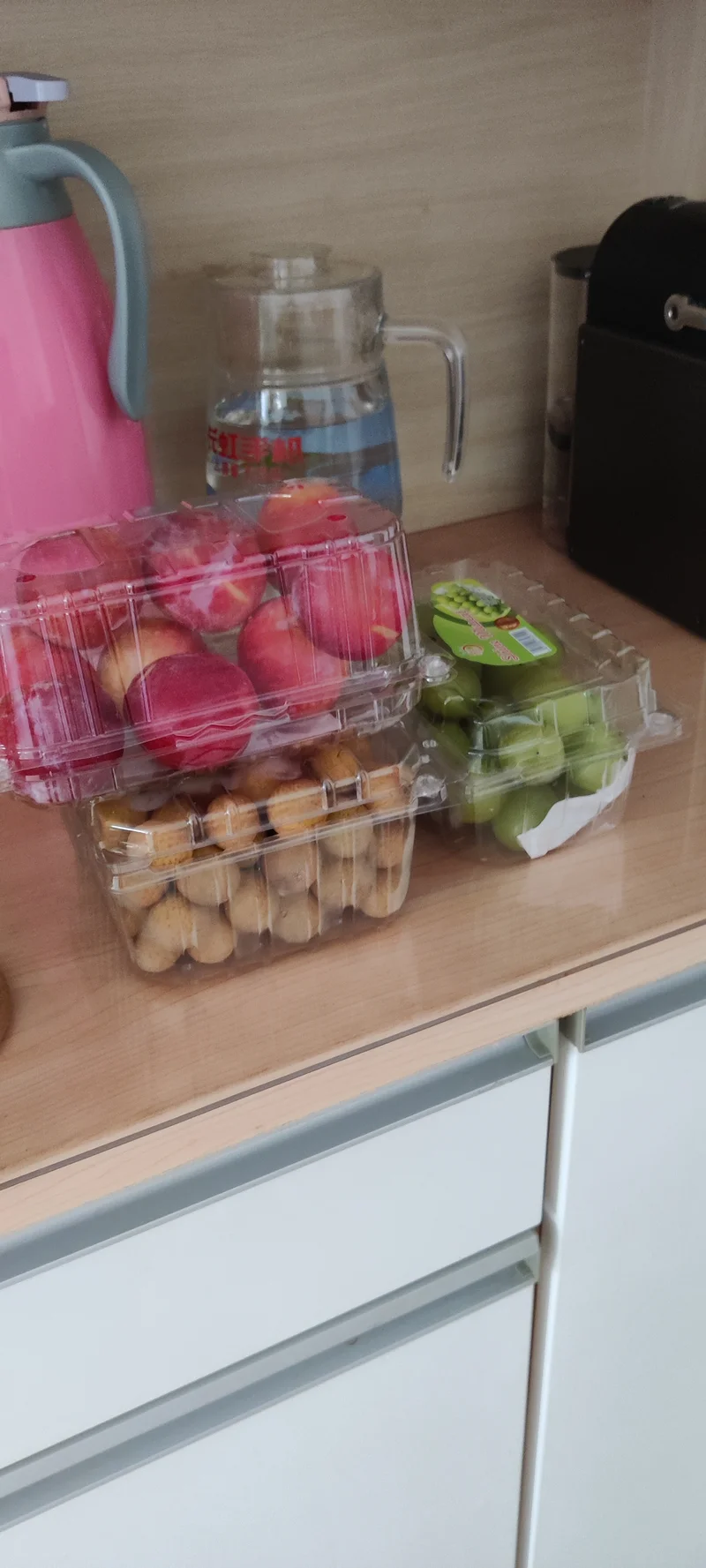 这是今日水果,龙眼、葡萄、桃子。