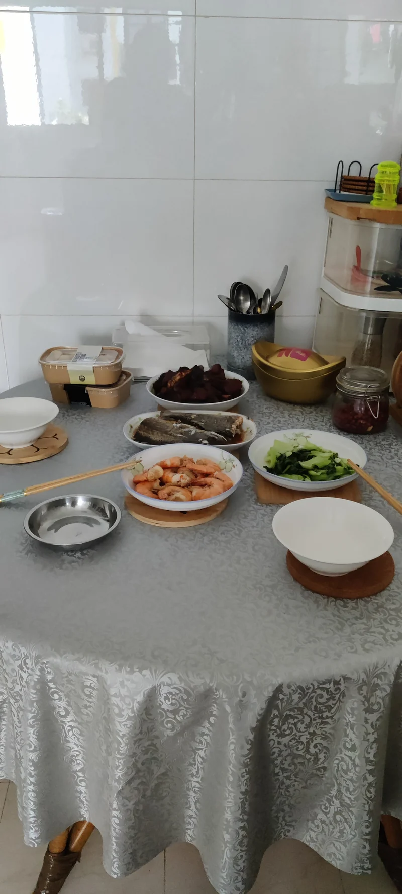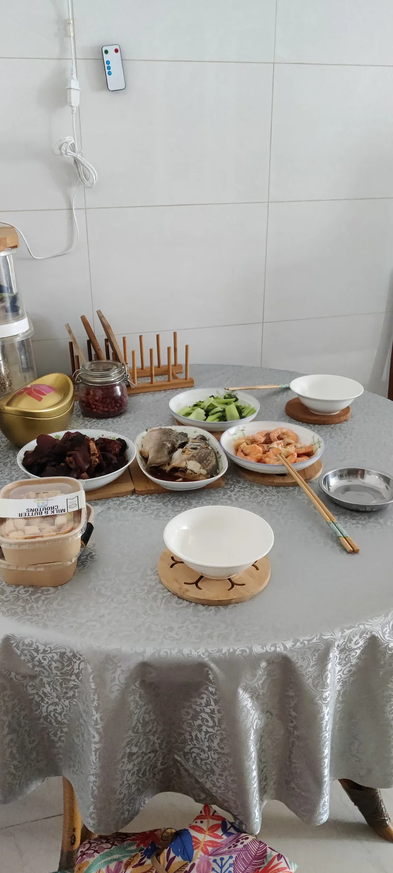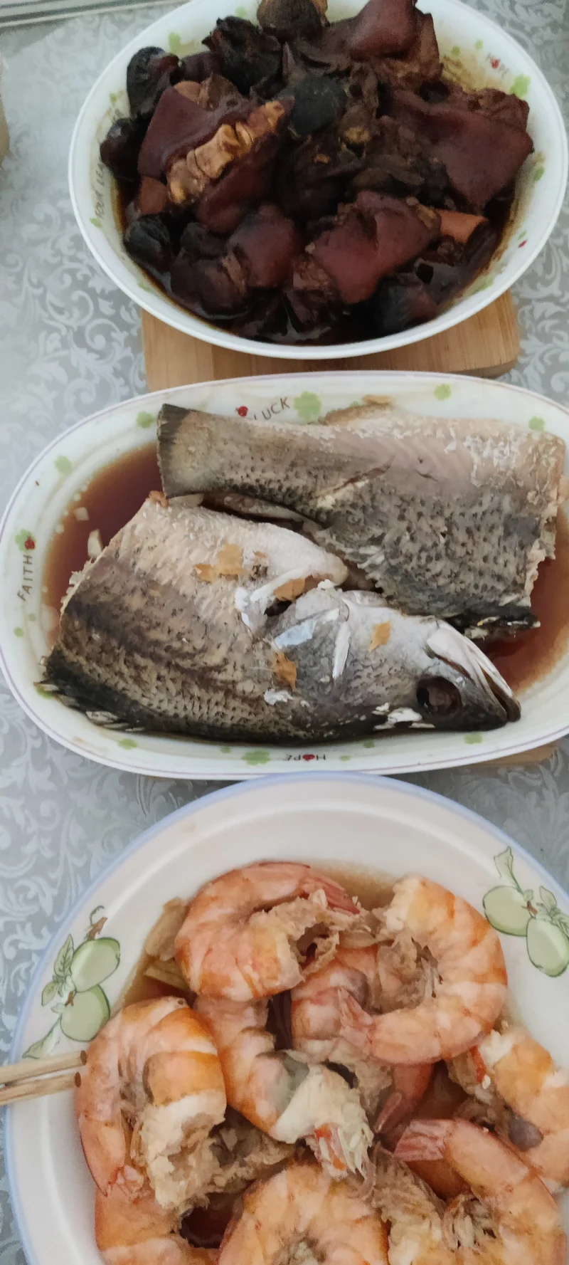 鲈鱼、猪脚、虾都好了。