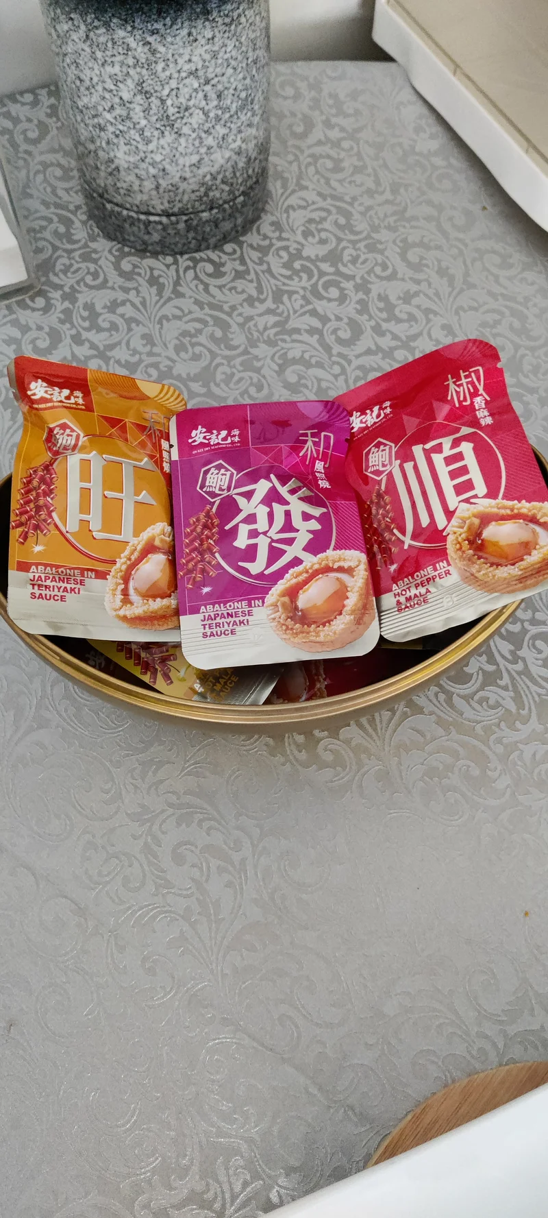 春节的余韵仍在继续,这个大金元宝, 放在桌上很壮观,是龙哥送的,里面是即食鲍鱼,口味独特,制作精良,有酱香和各种酒香味,食之虎躯一震,精神唤发。