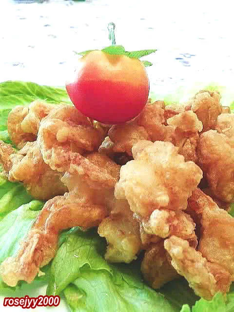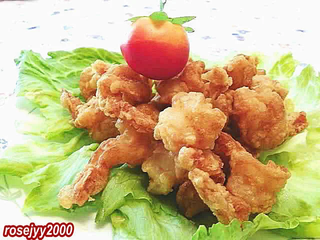 八、放入五成热的油锅是炸至浅黄色,捞起,再升高油温,翻炸至金黄色即可。
