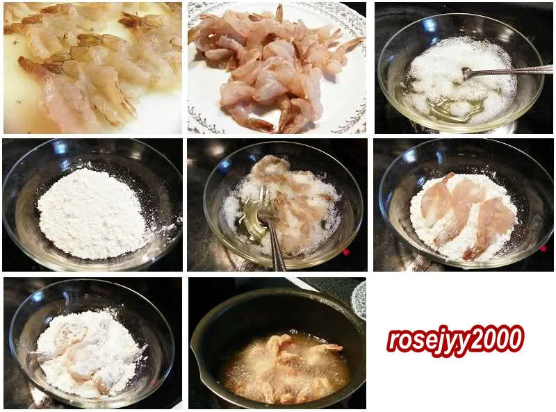 五、将腌过的虾只先蘸蛋白;
