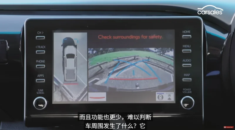 而海拉克斯得到的评价是,“很丰田”,不仅设计老气横秋,还布满硬塑料,除了坚固耐用基本上没有别的长处了,打开倒车影像的时候更是令人窒息,清晰度堪比诺基亚时代的功能机。