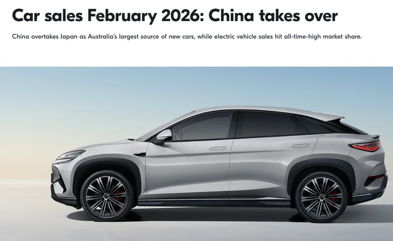 2026年2月,中国制造汽车在澳交付25781辆,同比增长50%,首度成为澳大利亚汽车市场第一大供应国,也终结了,自1998年以来日本车对于该市场的统治。