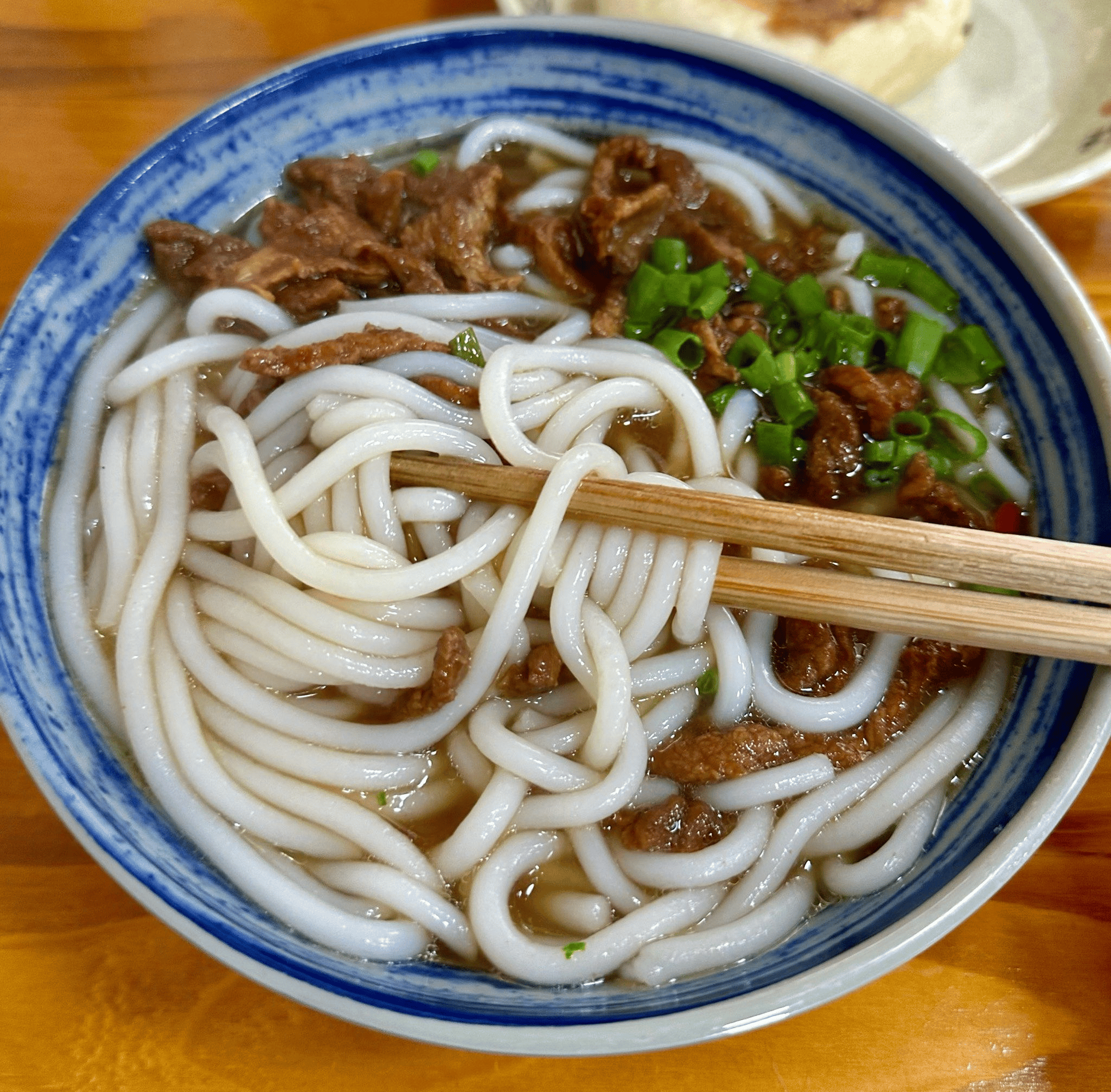 武夷山下的手工嗦粉快乐,闽北人早餐标配。选用本地大米经多道工序制成,米粉筋道爽滑、久煮不烂。搭配瘦肉、牛杂、大肠等浇头,猪骨汤底醇厚鲜香,简单调味却越吃越上头。嗦一口粉、喝一口汤,鲜醇裹着米香,把武夷山水的温润全揉进一碗里。