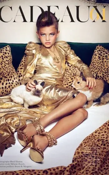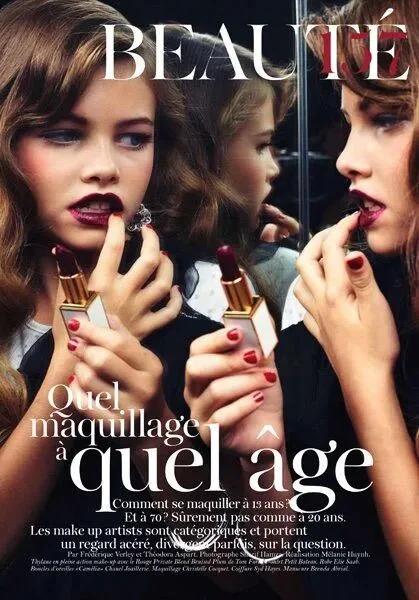 但成名的背后往往伴随着争议。2010年,年仅10岁的赛兰为法国版《Vogue》拍摄了一组名为《几岁化什么样的妆》的大片。