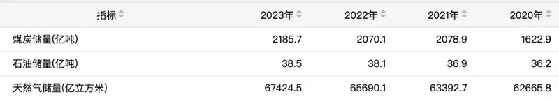 国家统计局公布的煤炭、石油、天然气的储量