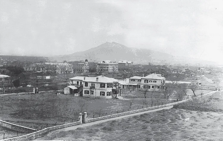 紫金山,又名蒋山、钟山、神烈山,是一处位于中国江苏南京城东郊的山陵。其东西向长度约7公里,南北向长度约3公里,面积约20平方公里。其主峰北高峰海拔高程约448.2米。这张拍摄于1911年的照片里,从我的中学母校,当年的汇文书院和金陵大学附中 (也就是后来的南京十中和金陵中学)的校园可以看见紫金山, 现在当然是不可能了。图中的五栋建筑物从左上角顺时针分别是口字楼(学生宿舍图书馆和食堂),教堂和钟楼(学校是美国教会在1888年建的,早于南京大学建校的1902年), 教学楼,小礼堂,校长及教务处楼。