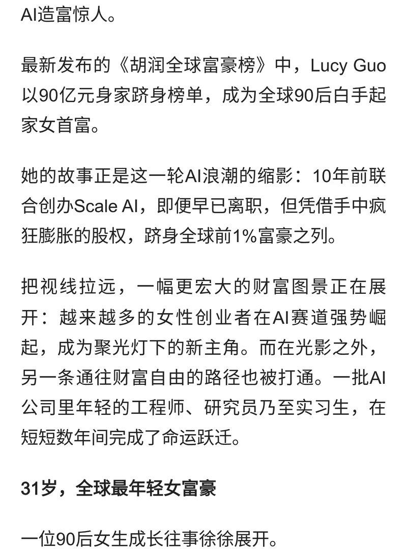 31岁 全球最年轻女首富诞生 华裔美女白手起家