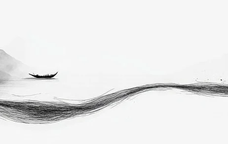 几缕飘飘画作潮,笔端一叶小舟摇。