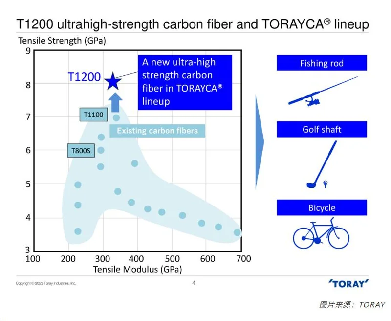 ▲东丽公司做的科普图,T1200就是当前技术的天花板