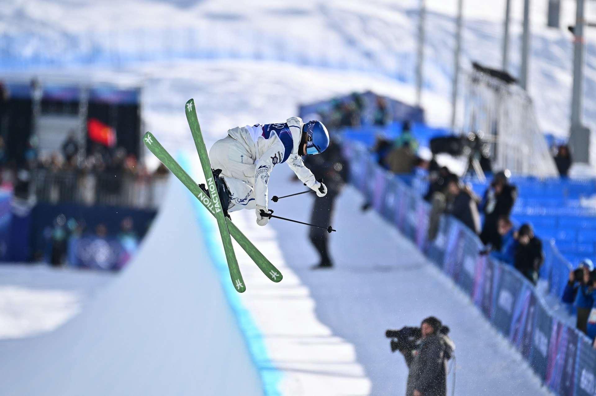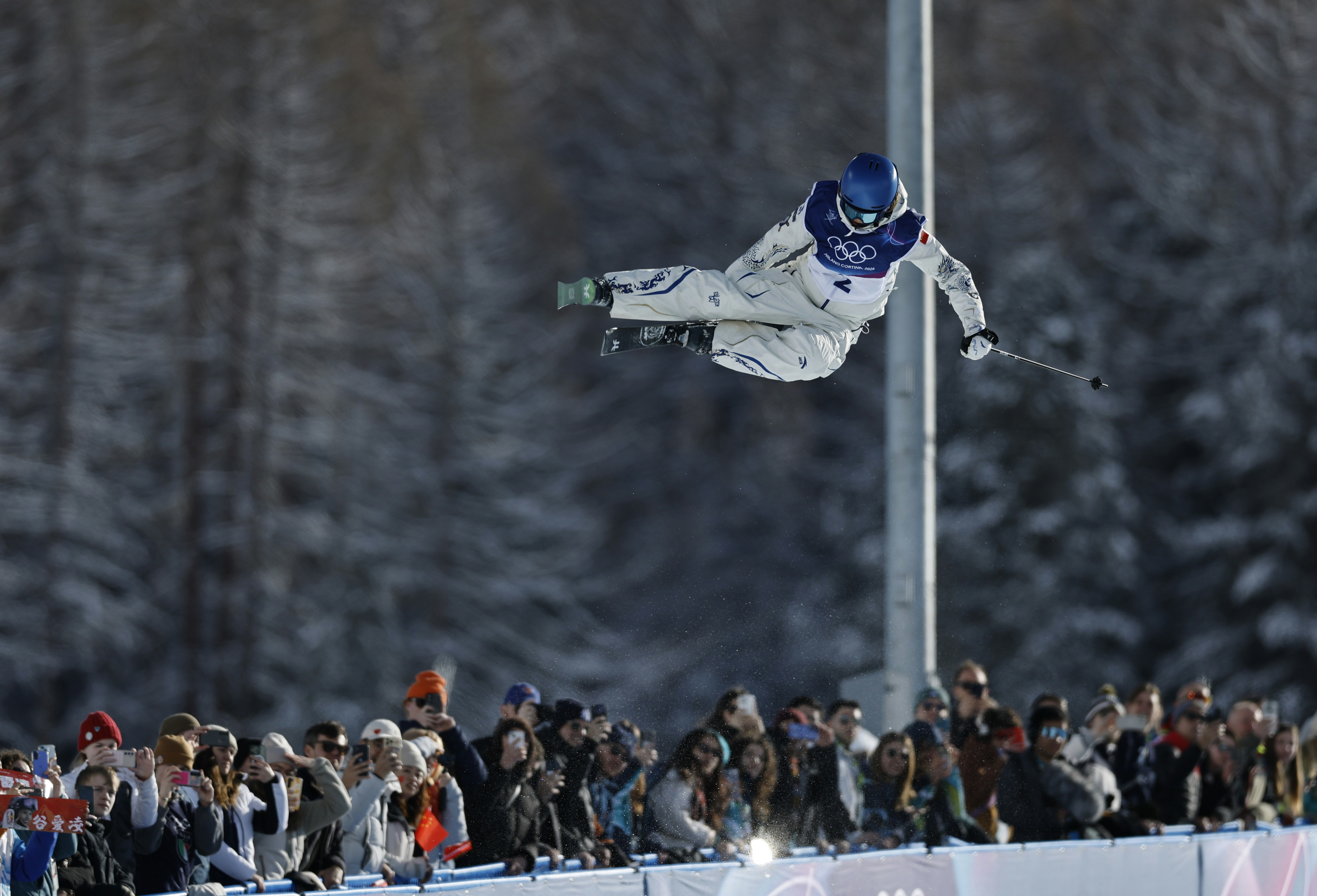 2月22日,米兰冬奥会自由式滑雪女子U型场地技巧决赛中,中国选手谷爱凌夺金。 (新华社)