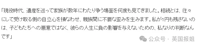 我不留下一分錢,并非对孩子们心存恶意,而是为了不让他们的生活受到负面影响,这不仅是我个人的判断,也是作为父亲能尽到的最后责任。”