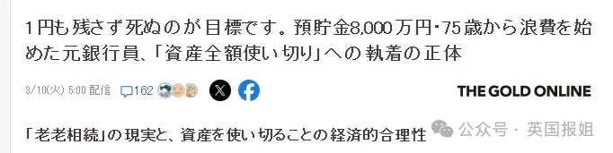 他手里握着 8000 万日元(约合 380 万人民币)的巨额存款,但他现在的终极人生目标只有一个:在死前,把这笔钱一分不剩地、全部挥霍光。
