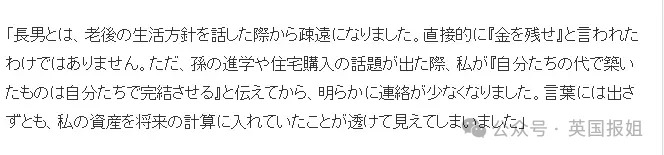“自从讨论了养老生活方针后,我和长子的联系就疏远了。