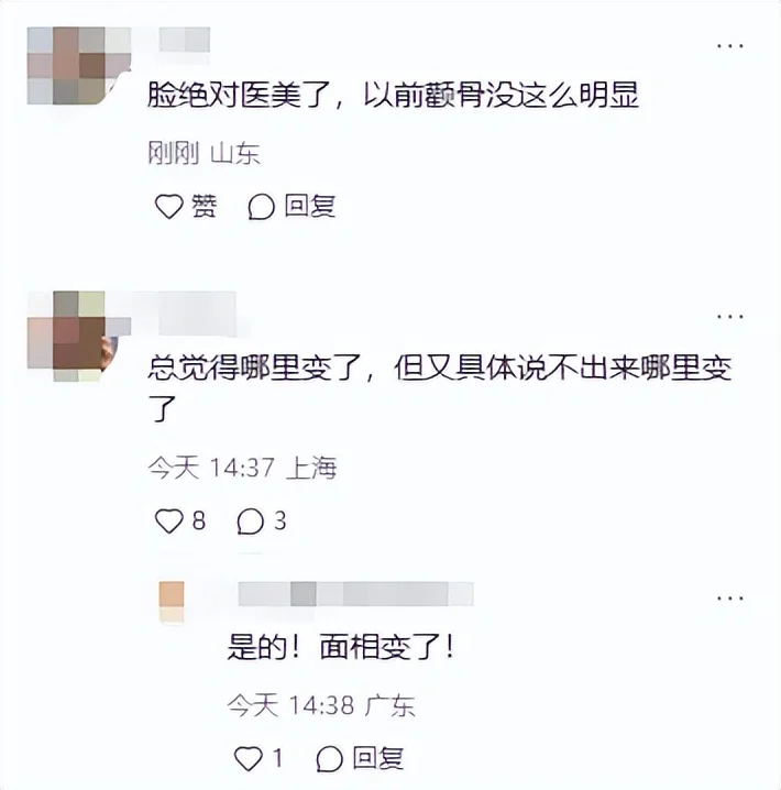 有人说 “感觉哪里变了又说不上来”,也有人精准点出 “鹅蛋脸的轮廓没了”,惋惜她千万别跟风医美,免得毁了天生的骨相优势。