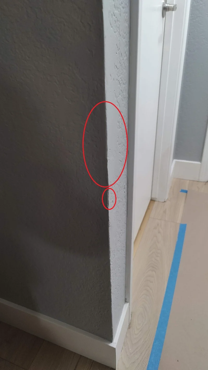 其一,进门处到客厅的墙拐角处略损: