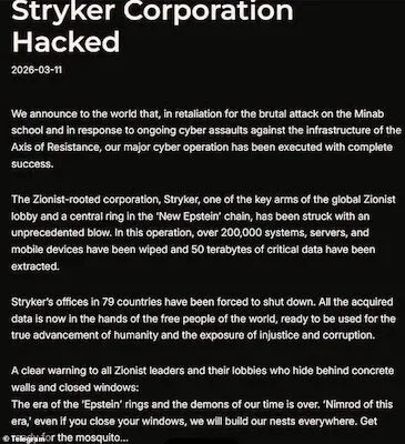 一个名叫“Handala”的亲伊朗黑客组织昨日公开宣称,他们对美国医疗科技巨头Stryker发动了大规模网络攻击,导致该公司在全球范围内出现系统瘫痪。
