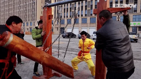 我随他来到大鸡寺的晨钟前,厨子指着钟前那个碗口粗的圆木道:“你要是不服,就用它来攻我,我躲一下,退一步,就算输了!”我暗叫侥幸,遂运足内力,驱木直冲,不曾想厨子果然不避不闪,也不曾退后半步。我直累得手脚酸麻,只得飘然退后,叹了口气,双手合十,对厨子说:“服了!看来你最近的确在精研三国,但不知你看了什么书?”