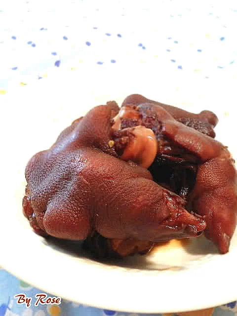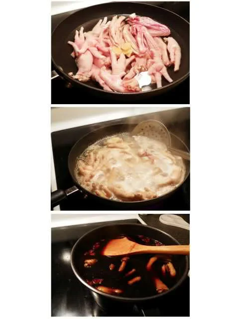 三、用热水清洗,加上卤水材料和1 碗水左右,慢火焖至入味入色。