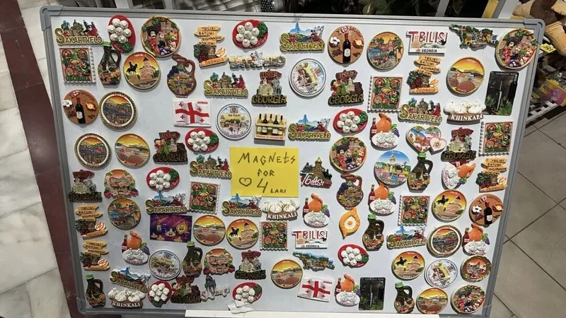 与此同时,景区的文创开发也相当薄弱。导游吐槽说:“我们这里的景区文创,除了冰箱贴,还是冰箱贴。”我实地考察了几个景点,发现确实如此——无论是第比利斯老城区的小店,还是卡兹别克山的景区商店,售卖的文创产品几乎都是千篇一律的冰箱贴、钥匙扣,上面印着简单的景点图案,没有任何设计感和文化内涵,价格还不便宜。