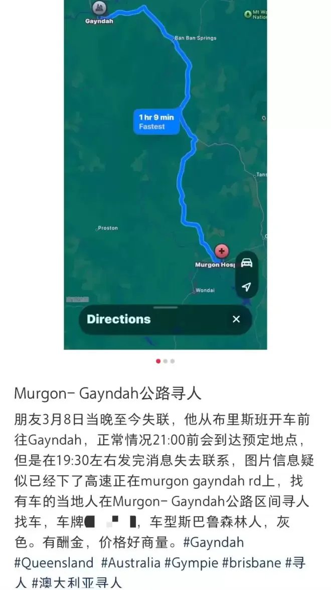 谢先生随即在XHS上发布寻人启事,详细描述那辆灰色斯巴鲁森林人,呼吁在澳华人提供线索。
