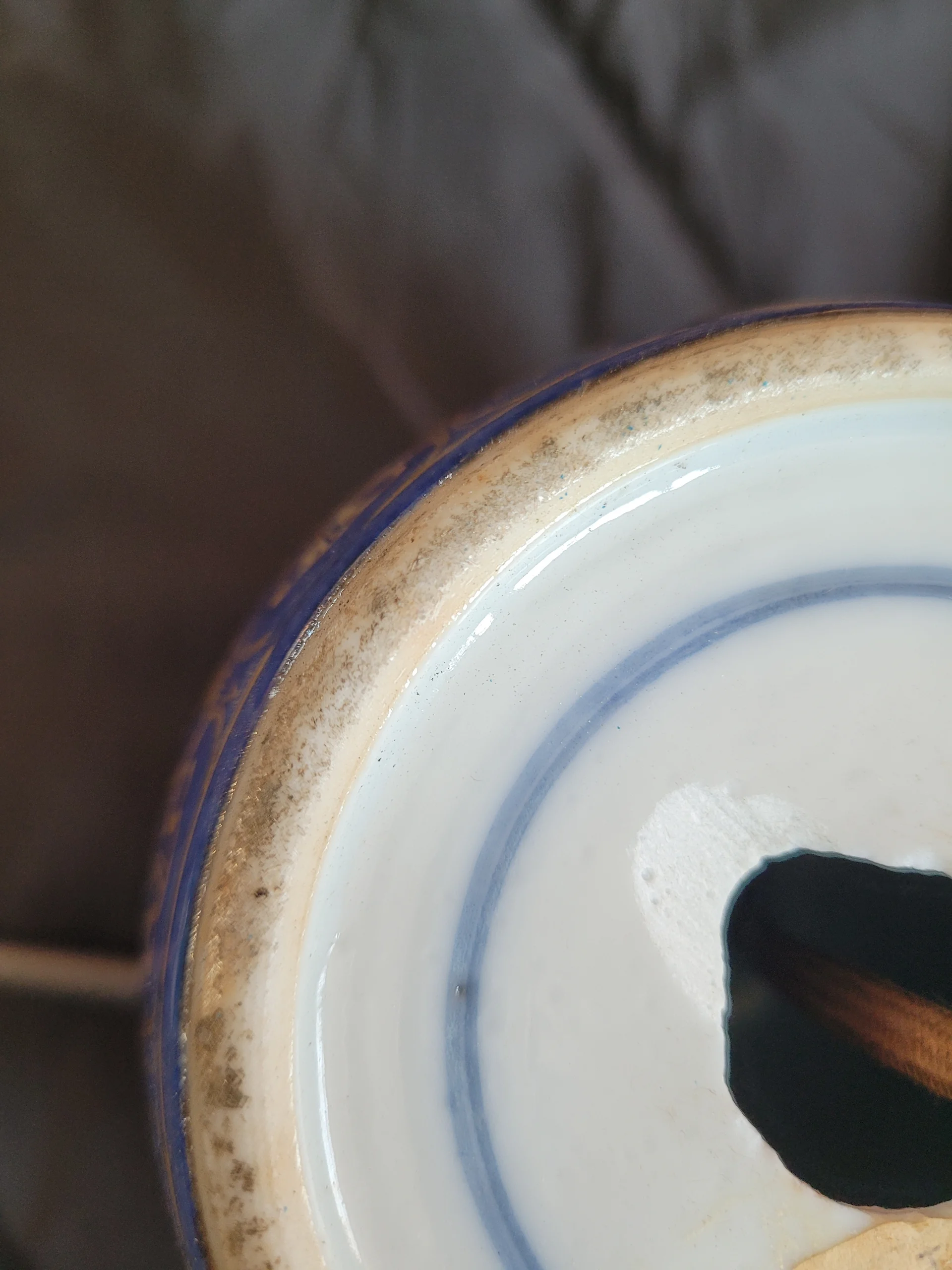 “洒蓝釉”,明宣德时景德镇所创。是在烧成的白釉器上,以竹管蘸蓝釉汁水,吹于器表,形成厚薄不均、深浅不同的斑点,再上一层薄釉高温烧制而成的。也算一件高温单色釉器。