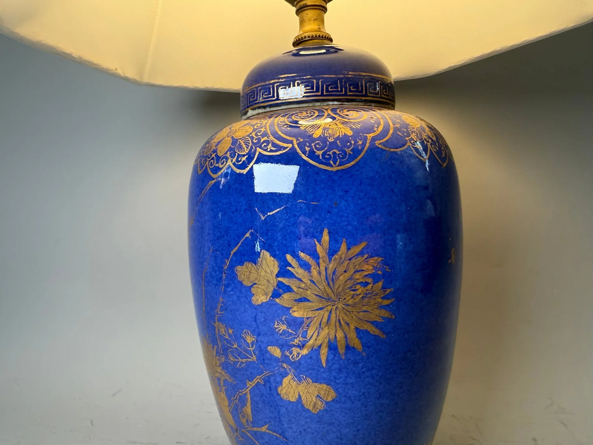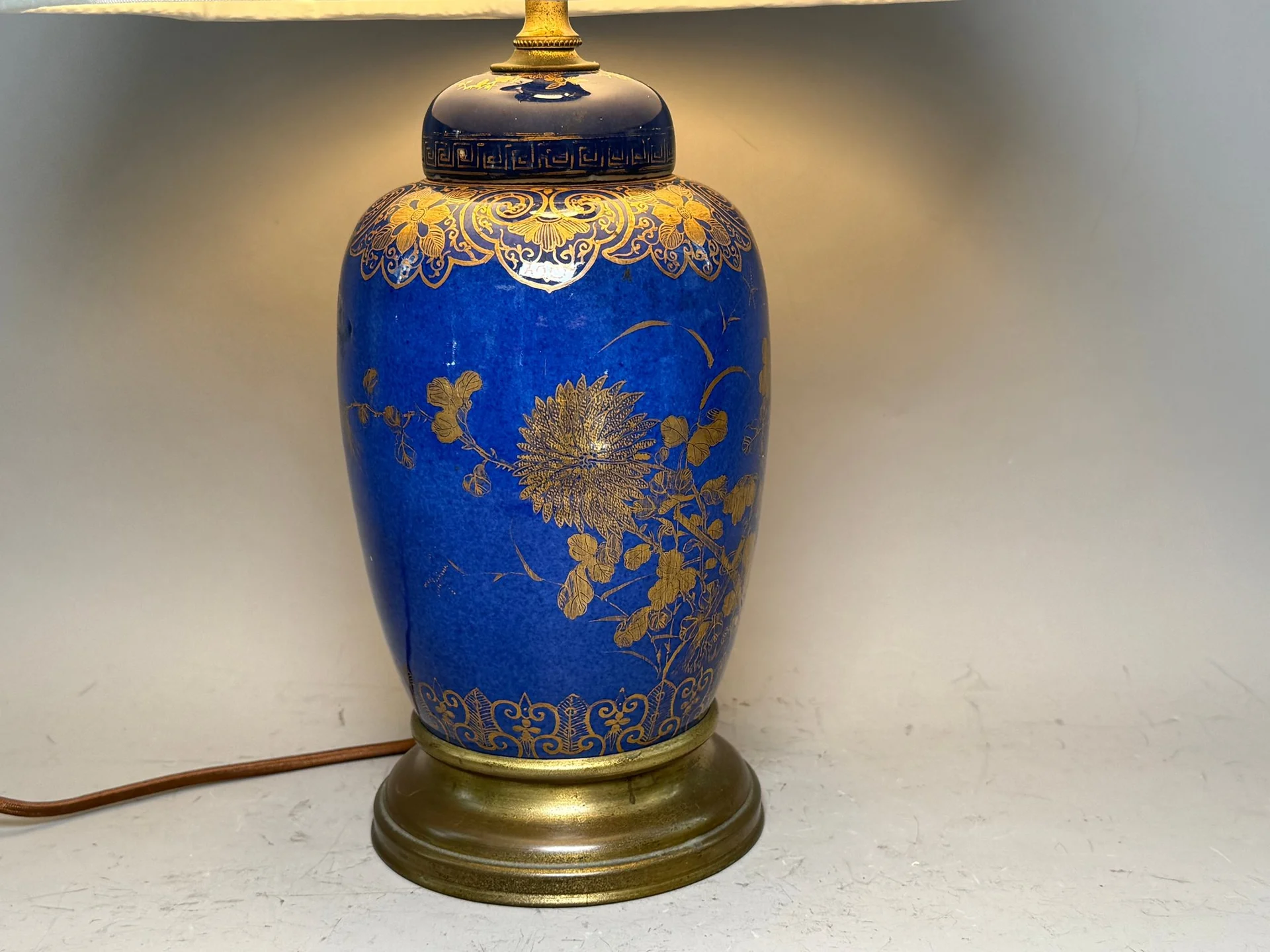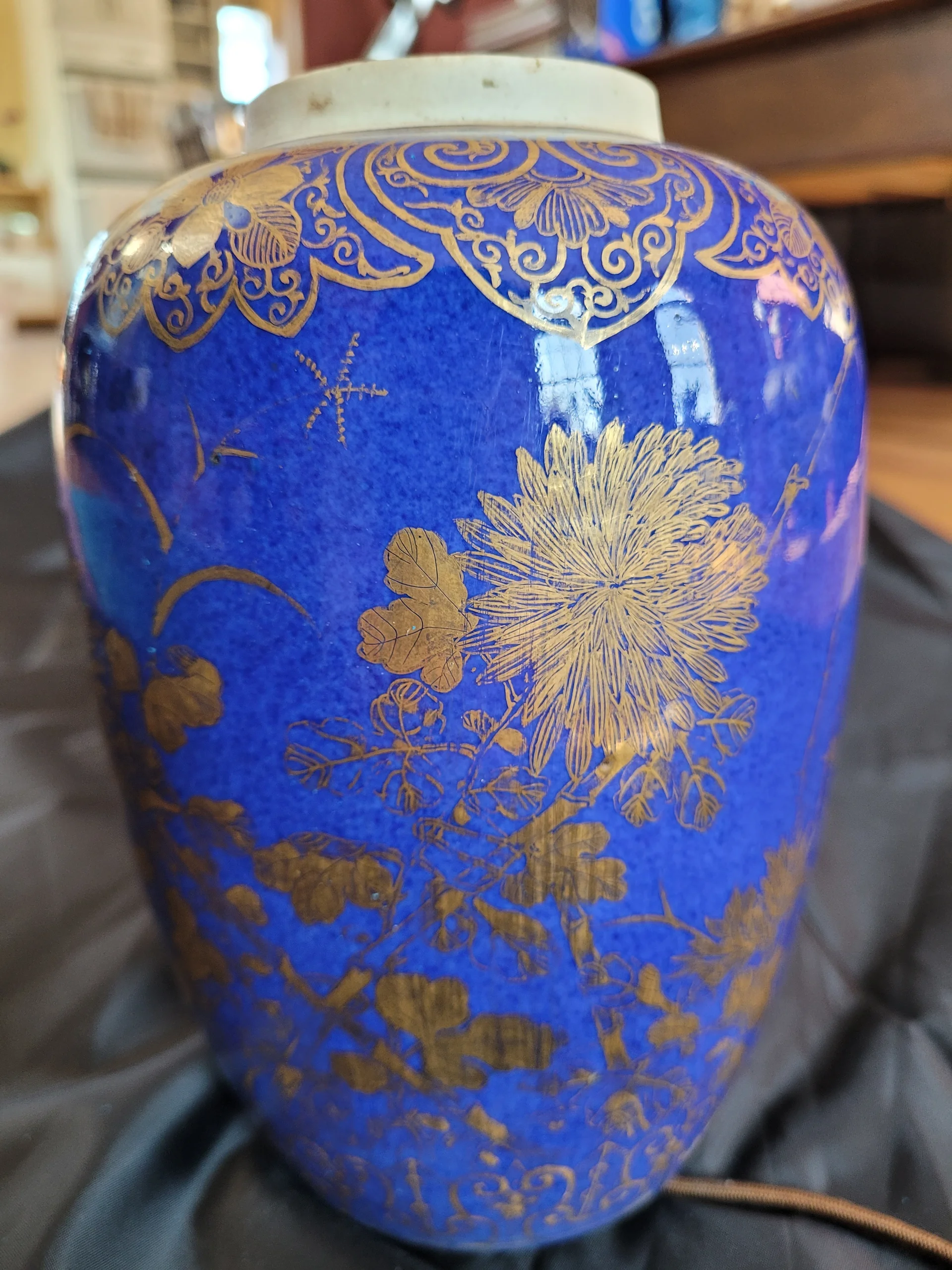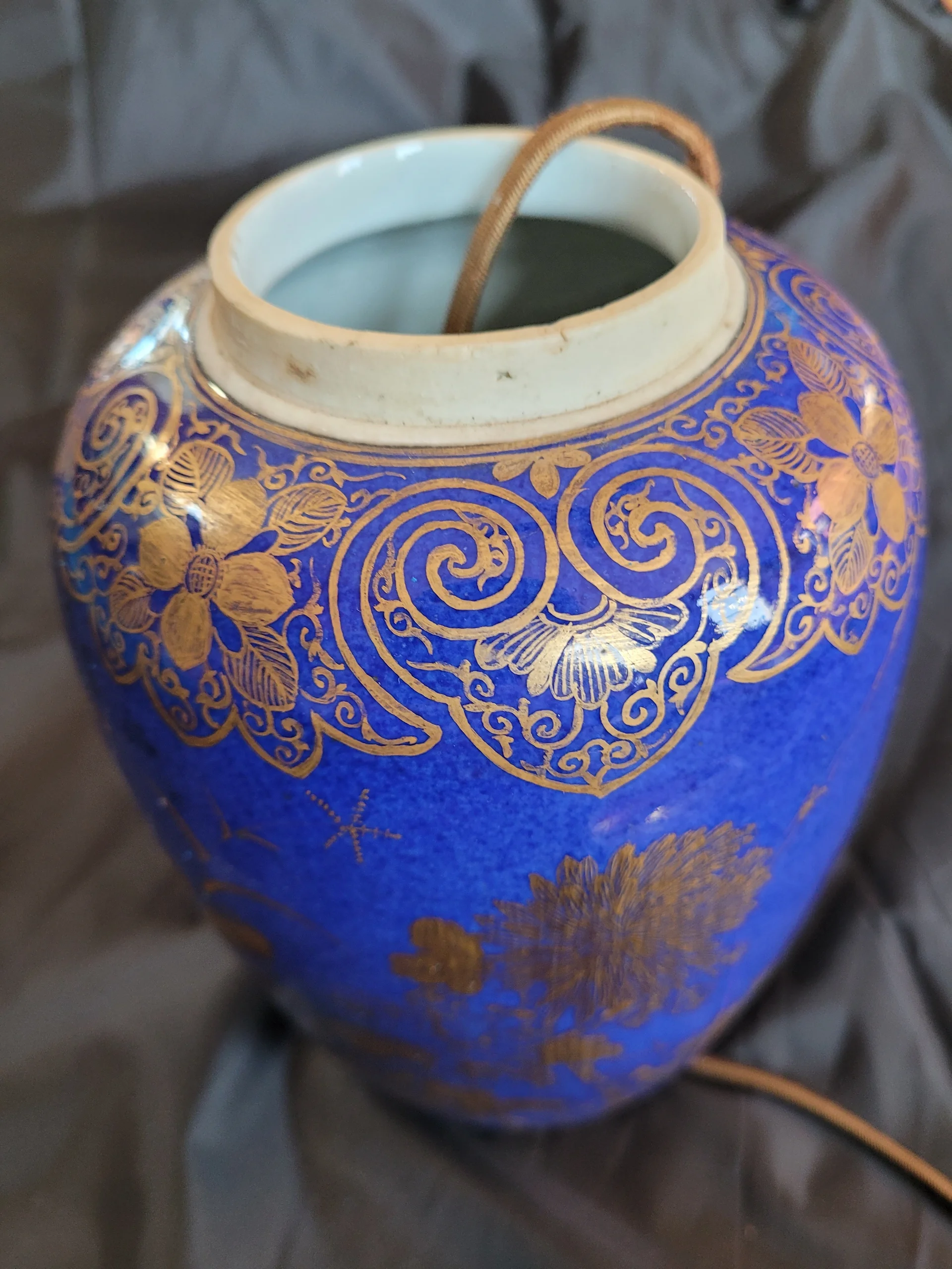 一个洒蓝描金小冬瓜型盖罐改制的台灯