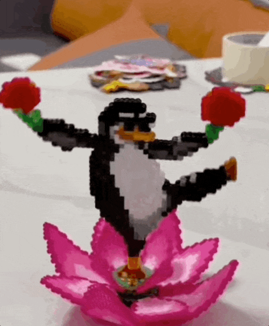 还有很多人不满足于平面效果,开始钻研起拼豆的3D玩法。只需增加一个旋转轴承,就能让优雅企鹅从表情包变成现实。