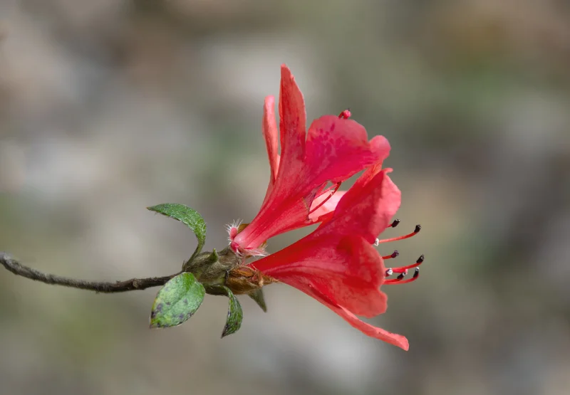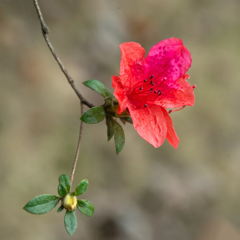 记得孩时与小伙伴们经常在这片山坡上玩耍。那个年代的春天,这里遍地开满了映山红。时过境迁,现在这里满目皆黄土,偶见一两株矮矮的映山红小树,在初春的寒风中倔犟地摇逸着几朵淡淡红花。