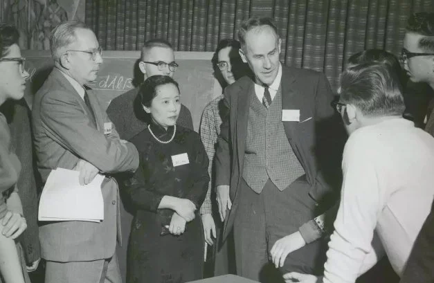 上面这张照片,奥本海默右边的穿白色旗袍的美女就是吴健雄, 吴健雄右边的那位是爱德华·泰勒 (Edward Teller)。这里再加几张吴健雄博士在不同时期的照片: