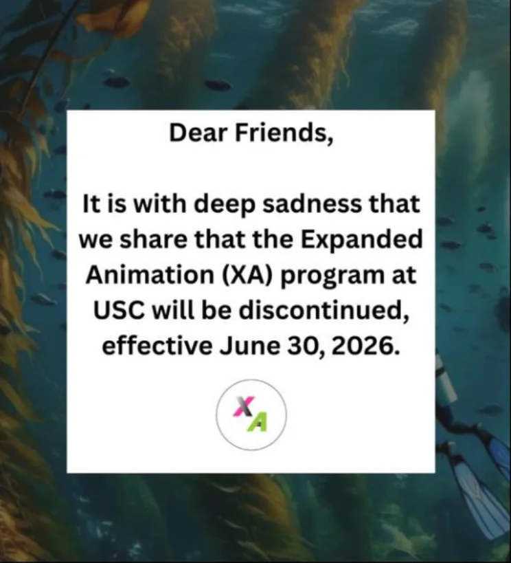 2月20日,USC电影艺术学院投下一枚震撼弹——正式宣布终止“拓展动画:研究与实践”硕士项目(Expanded Animation: Research + Practice,简称XA)。校方给出的理由是“招生人数下降”与“项目不可持续性”。