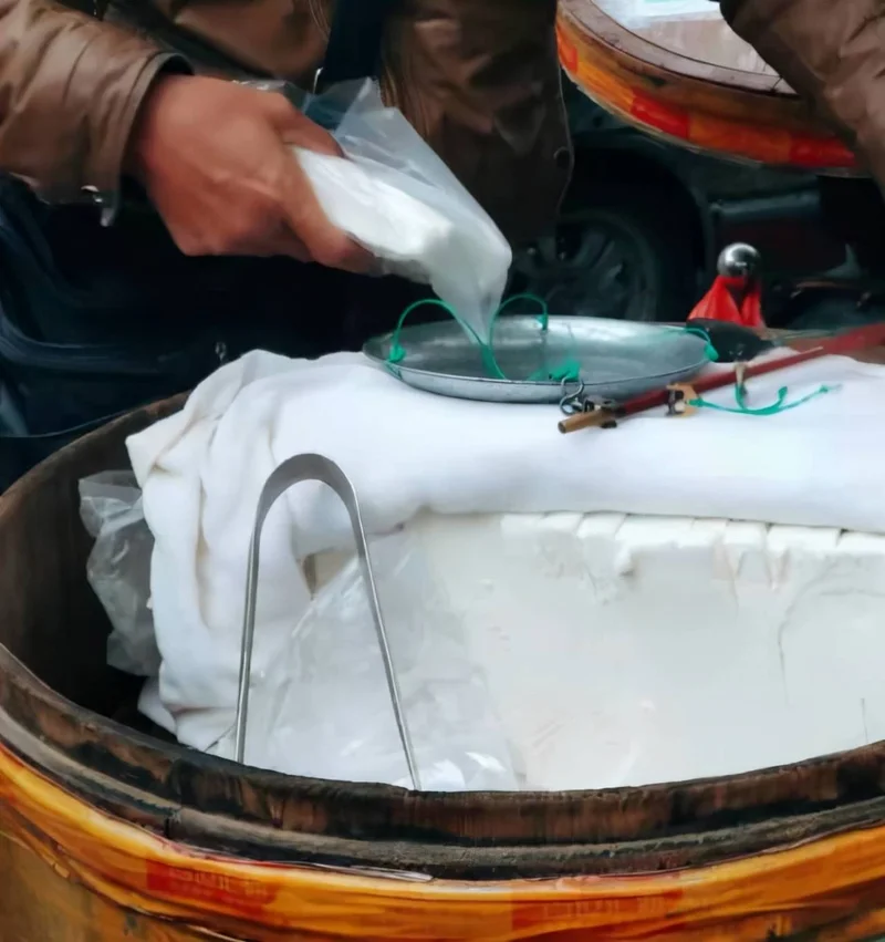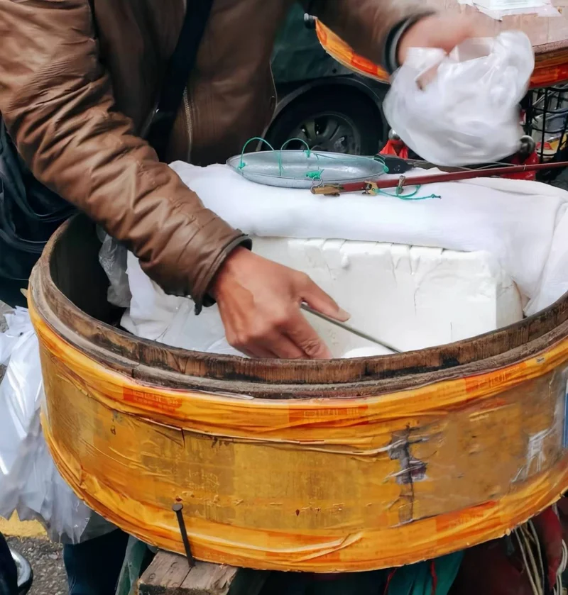后来这白糕就越来越少了,以至于我几十年来都没有吃过了。幸好我孩子前一段回国,吃了很多家乡的美食,其中也有『哦!』,在医院门口经常可以见到。