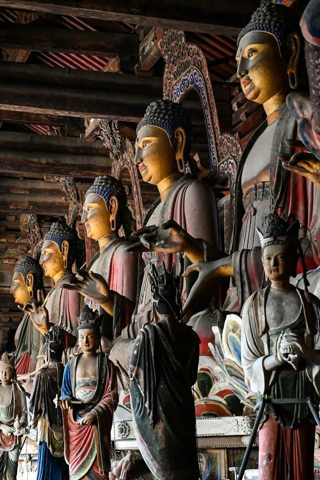 大殿内的辽代彩塑。(图/视觉中国)