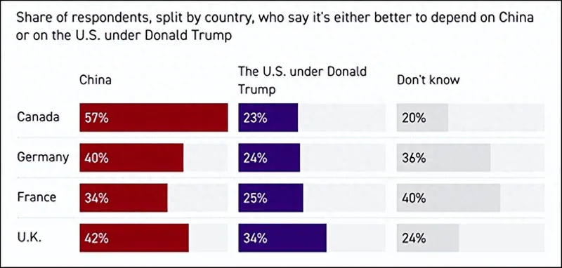 中方可以说是帮其他被美301调查针对的经济体说出了他们想要的心里话,因此,让美国没想到的是,四大盟友——加拿大、英国、德国、法国开始转向中国。他们看明白了:美国反复无常,连盟友都不放过,中国在关键时刻更靠谱。