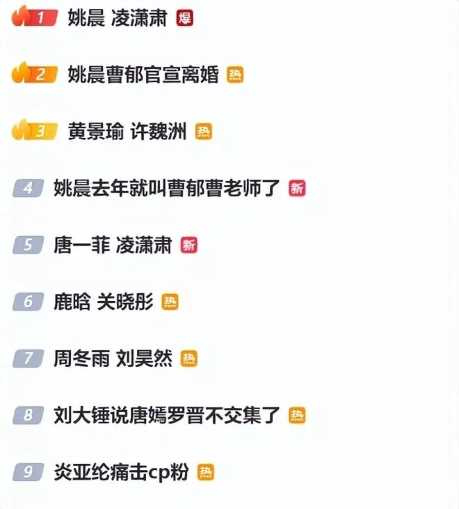除了姚晨与曹郁的相关词条,热搜榜单中又又又出现了凌潇肃的身影。
