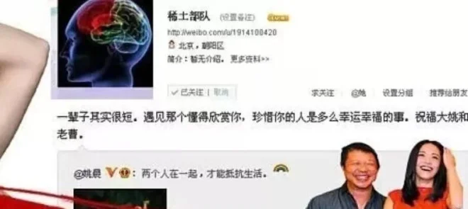 内娱明星夫妻离婚大队再添一员猛将,姚晨与摄影师曹郁官宣离婚了。
