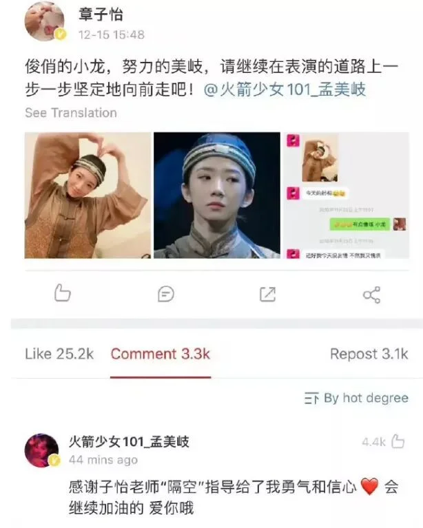 这姐竟然还艾特孟美岐,力挺她在表演的道路继续坚定前进。