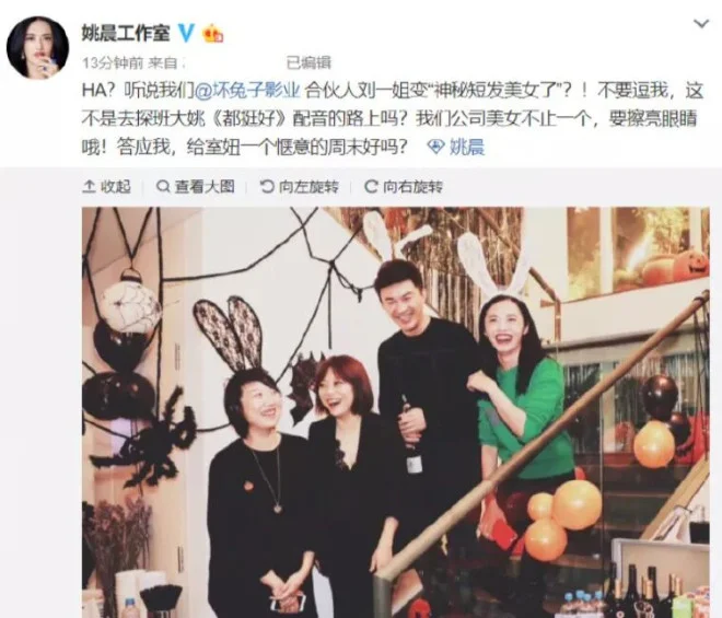 结婚4年后,姚晨与曹郁共同创立了“坏兔子影业”,实现夫妻二人的资本绑定。