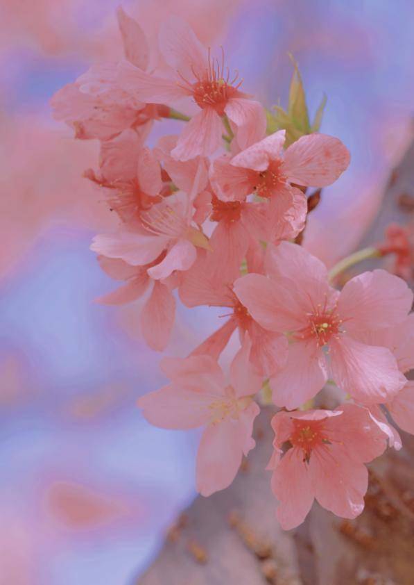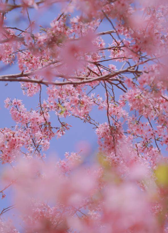 一簇簇粉色或白色的花朵,在枝头呈现出一种庄重自持的排列。它们不拥挤,不喧哗,各自占据一小片天空。