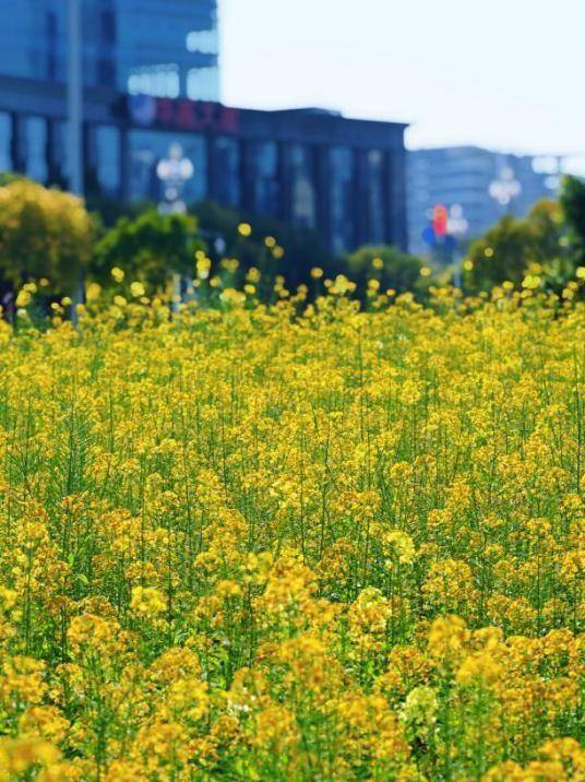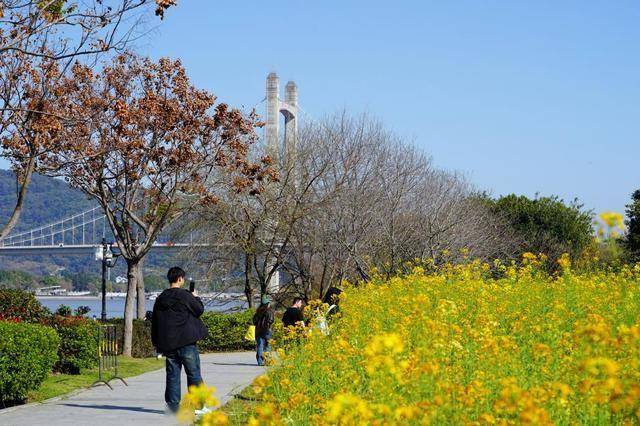 三月,正值油菜花的盛花期。鹅黄、奶白、粉紫、橙红……层层叠叠的像被打翻的调色盘,沿着江岸肆意铺展。
