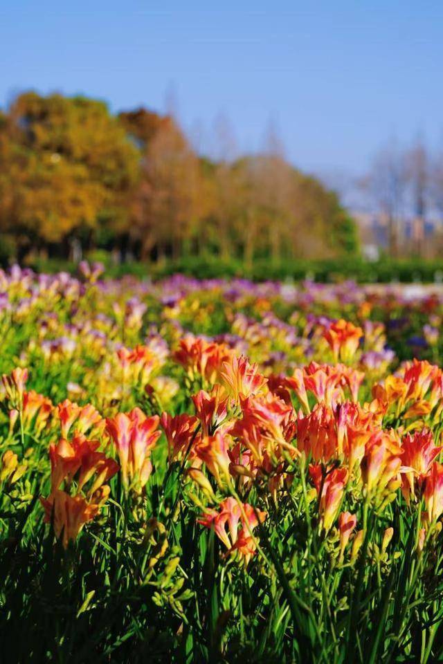 ○ 拍摄小苍兰时,请试着俯下身子,将镜头贴近地面,以层叠的花簇为前景,更加出片。