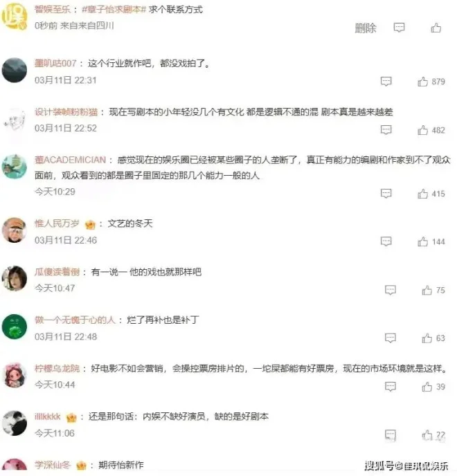 也正因为有这样的行业现状,章子怡一句简单的求剧本,就被过度解读成了“放下身段”“被迫低头”。