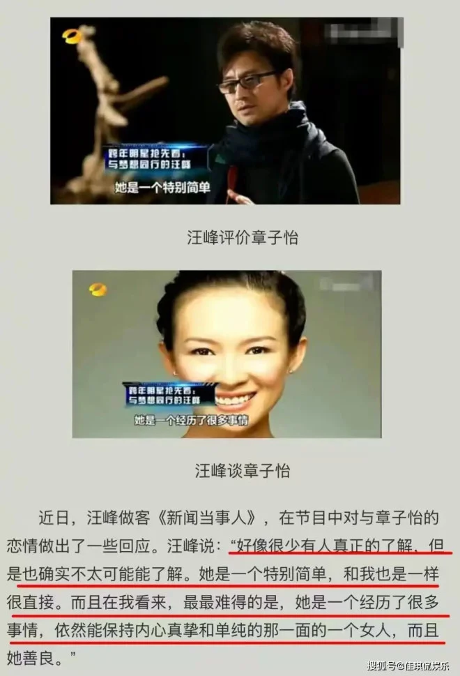 汪峰曾多次公开说,章子怡是一个特别简单、特别直接的人,内心始终保持着真挚和单纯,在复杂的娱乐圈里非常难得。