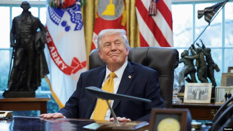 唐纳德·特朗普总统在白宫椭圆形办公室签署行政命令,成立由副总统JD·万斯领导的反欺诈工作组,并回答记者提问。(2026年3月16日)